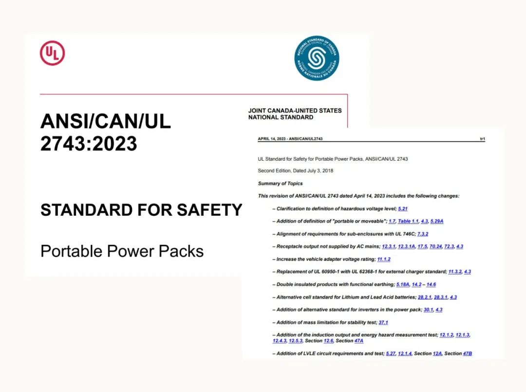 On April 14, 2023, the American National Standards Institute (ANSI) and the Standards Council of Canada (SCC) released ANSI/CAN/UL 2743:2023, a safety standard for mobile energy storage. This new edition is an important revision of UL 2743:2018 and UL 2743:2020 and includes a series of standard optimizations.